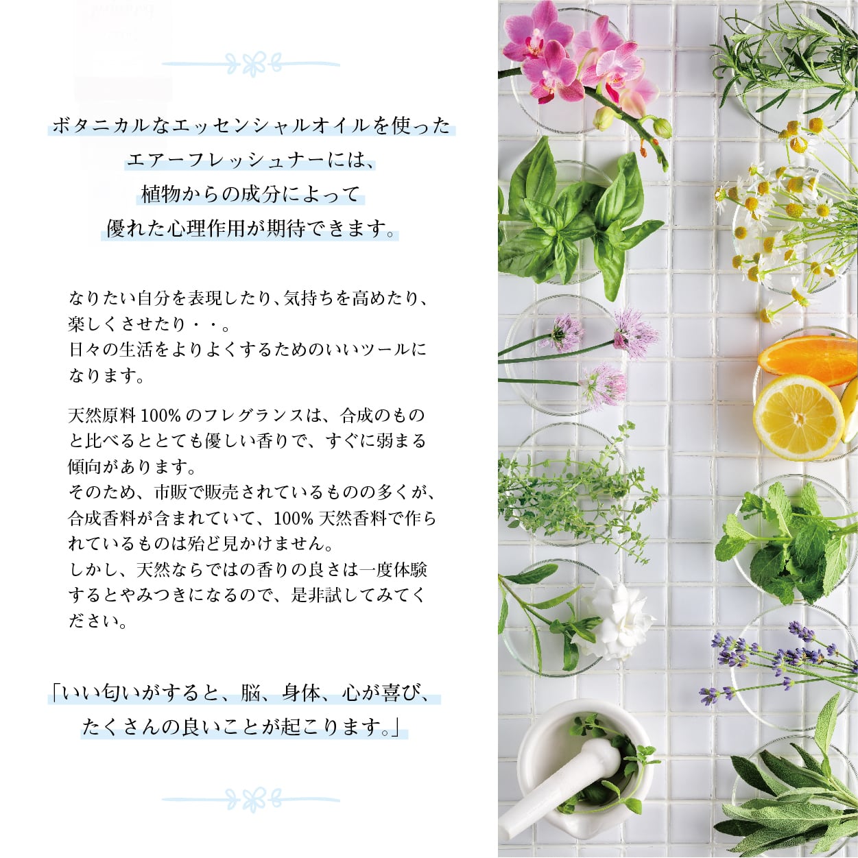 「いい匂いがすると、脳、身体、心が喜びみんなが笑顔になります。」