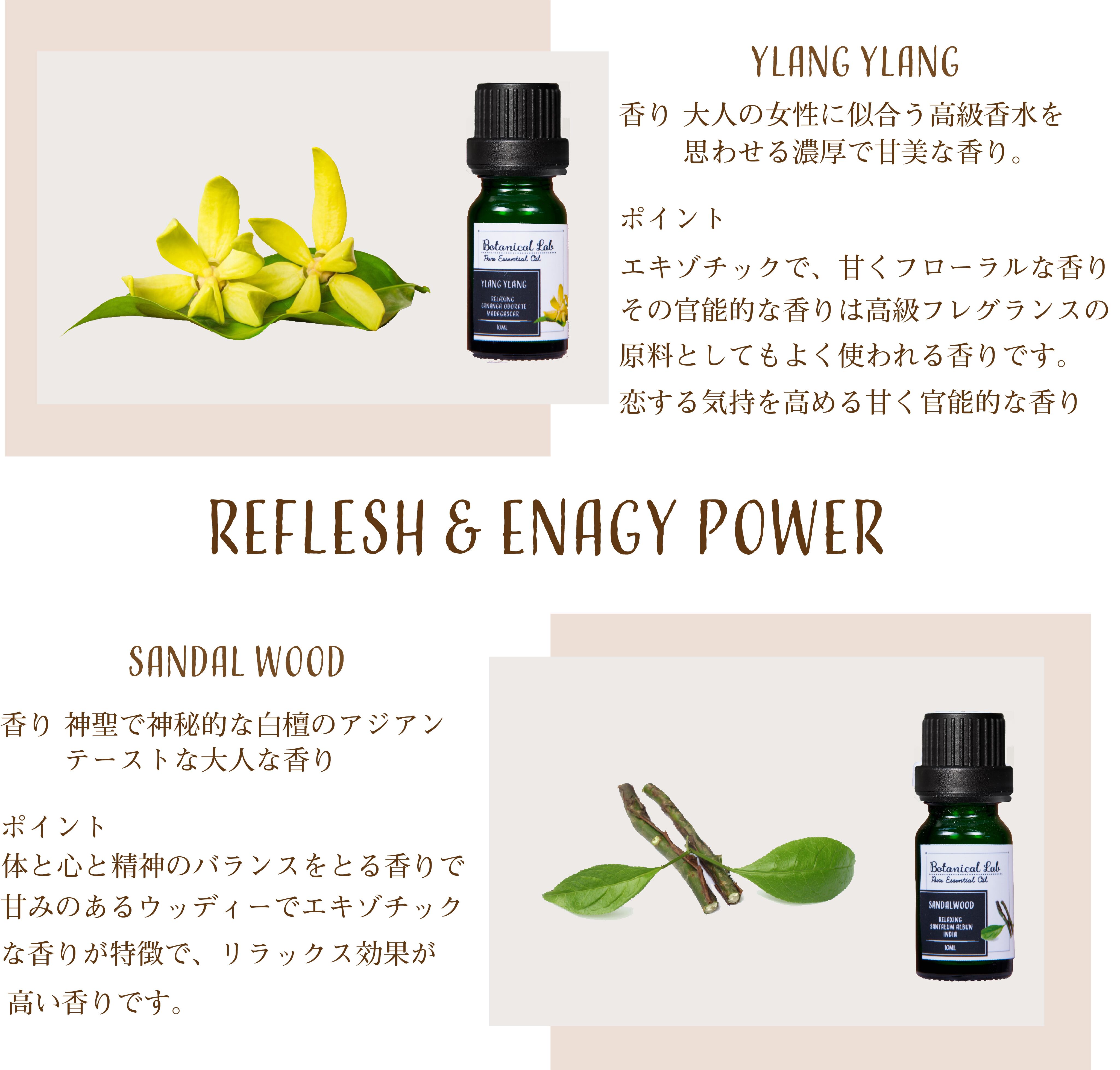 エッセンシャルアロマオイル(イランイラン,サンダルウッド)で