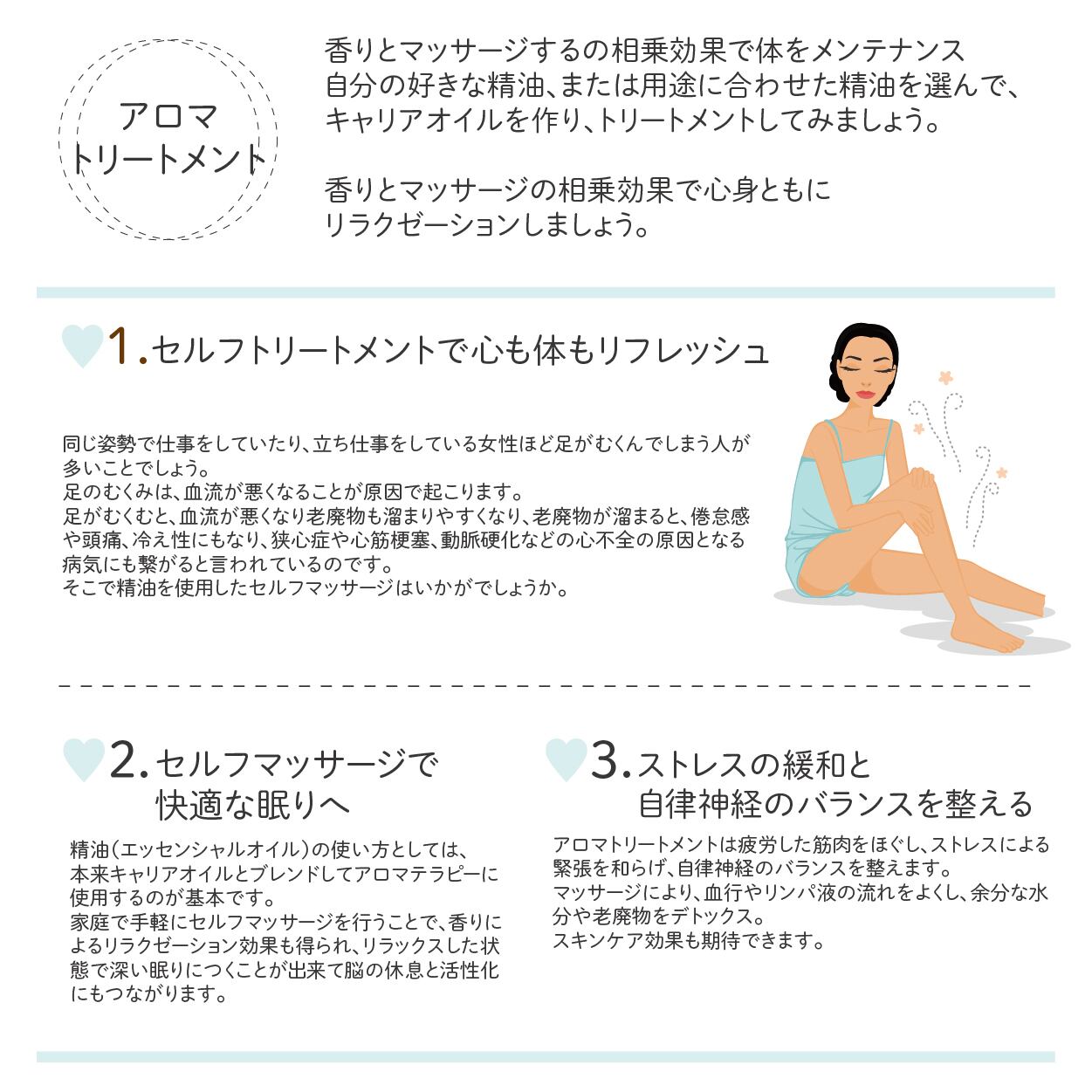 妊産婦や乳幼児、または、既往症のある方は、使用できない精油があります。使用前に主治医や専門家にご相談の上、ご使用下さい。