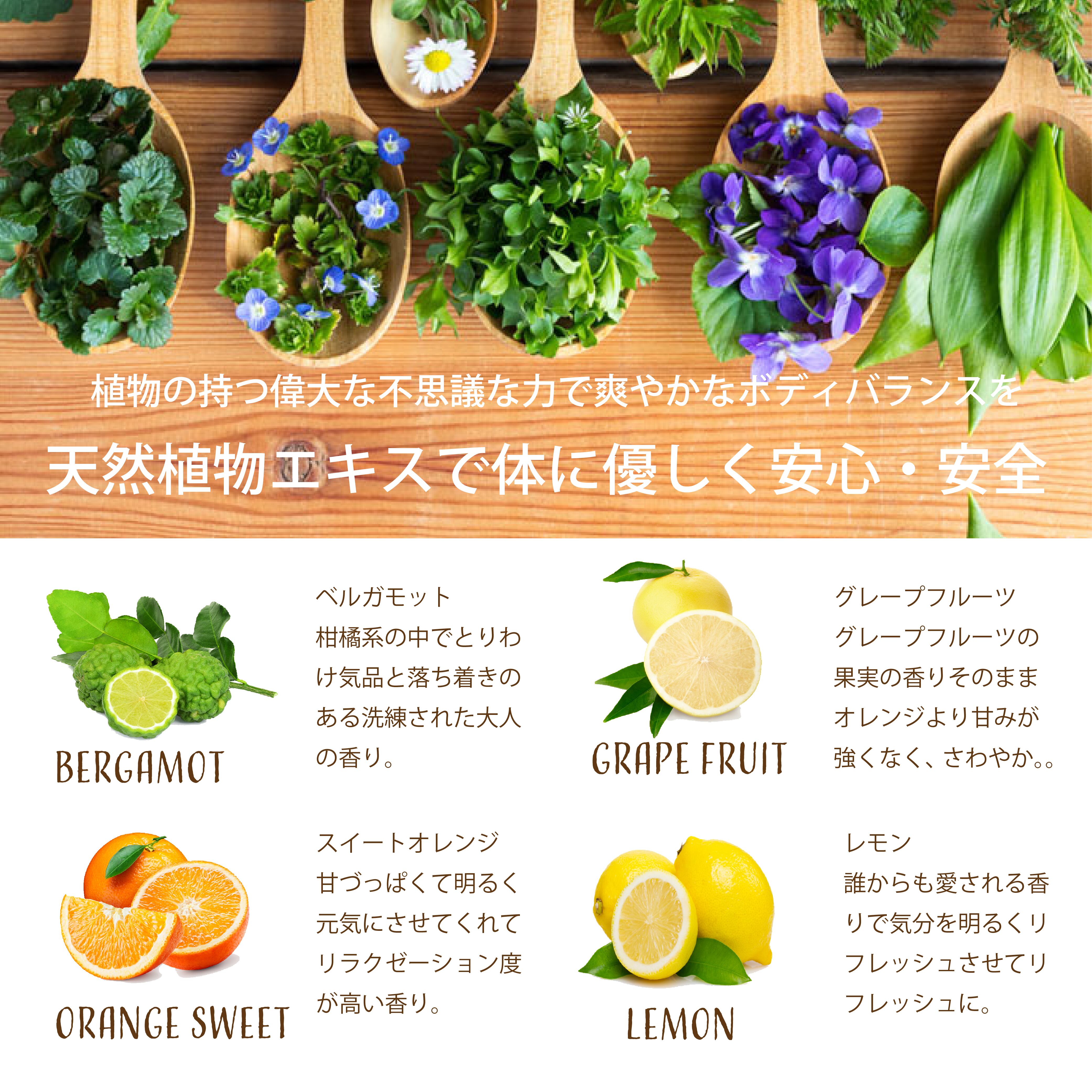・天然アロマ, ベルガモット、オレンジスイート、グレープフルーツ、レモンの