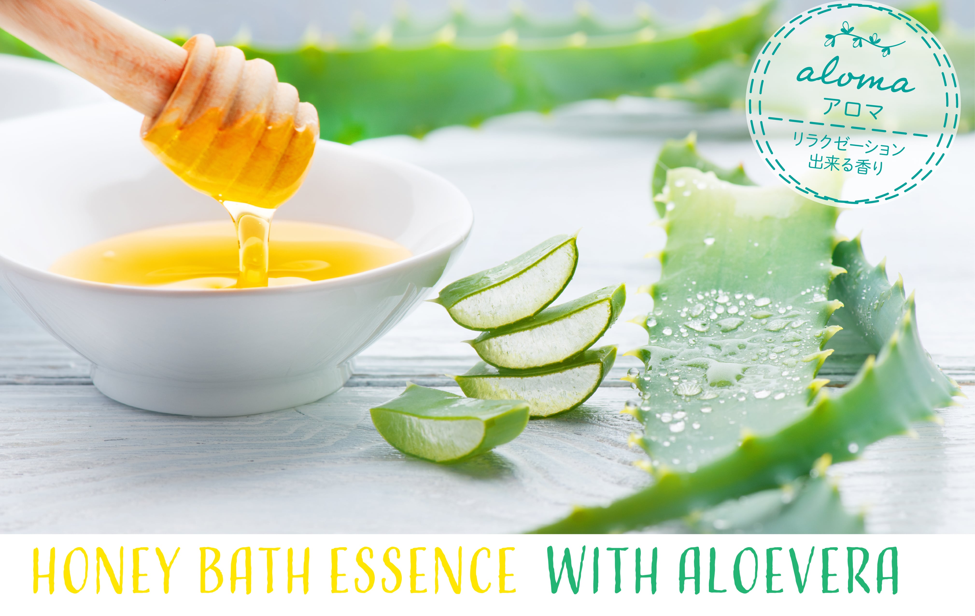 香り高いエッセンシャルオイルと、保湿力に優れたハチミツ、アロエベラ液汁、植物オイル類を贅沢にブレンド。アロマとハーブのナチュラルな香りが心地よいバスタイムを演出します1日の疲れをバスタブに身を沈めてくつろぐだけで、全身まるごとしっとり、ハチミツとアロエの力で日中に浴びた紫外線もリセットします。